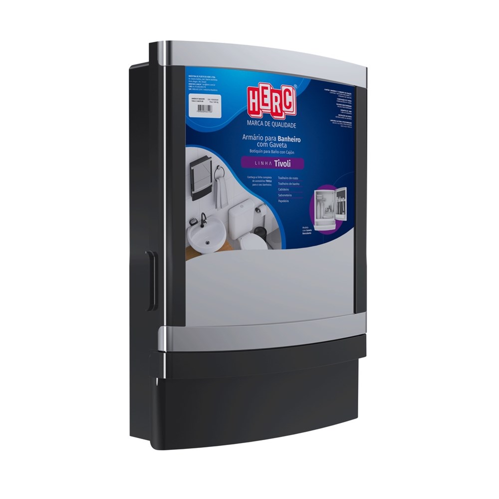ARMARIO P/BANHEIRO TIVOLI C/GAVETA PRETO/CROMADO - HERC