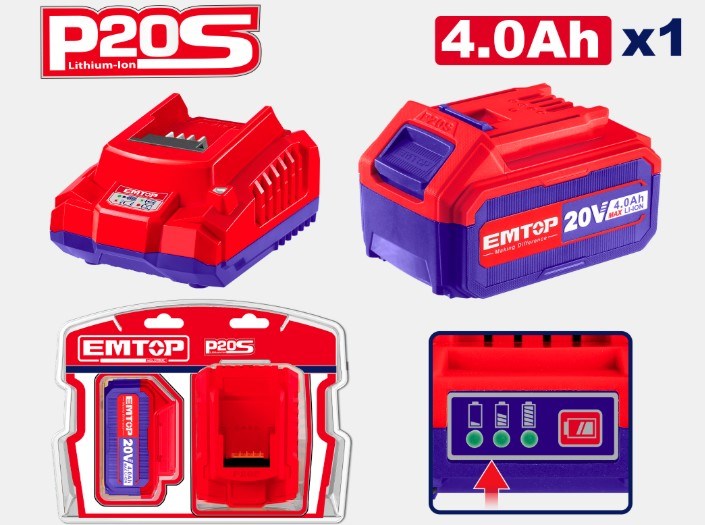 BATERIA RECAR 20V 4AH ION-LITIO + CARREGADOR - EMTOP