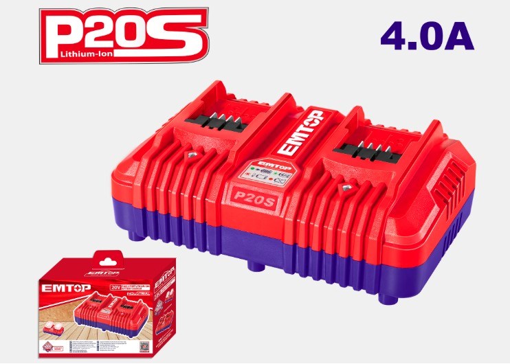 CARREGADOR DE BATERIA DUPLO 4AH 21V P20S BIVOLT - EMTOP