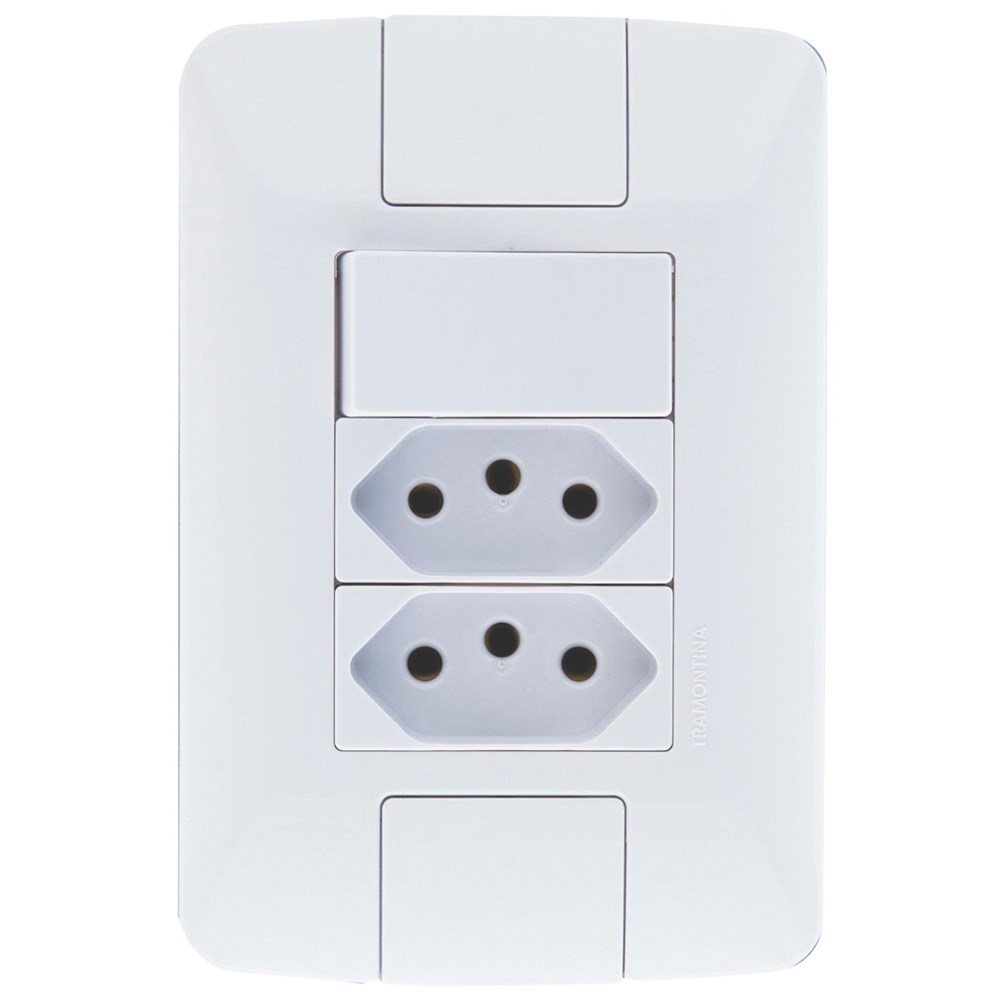 INTERRUPTOR DE EMBUTIR 1 TECLA + 2 TOMADAS COM PLACA 20A ARIA BRANCO - TRAMONTINA