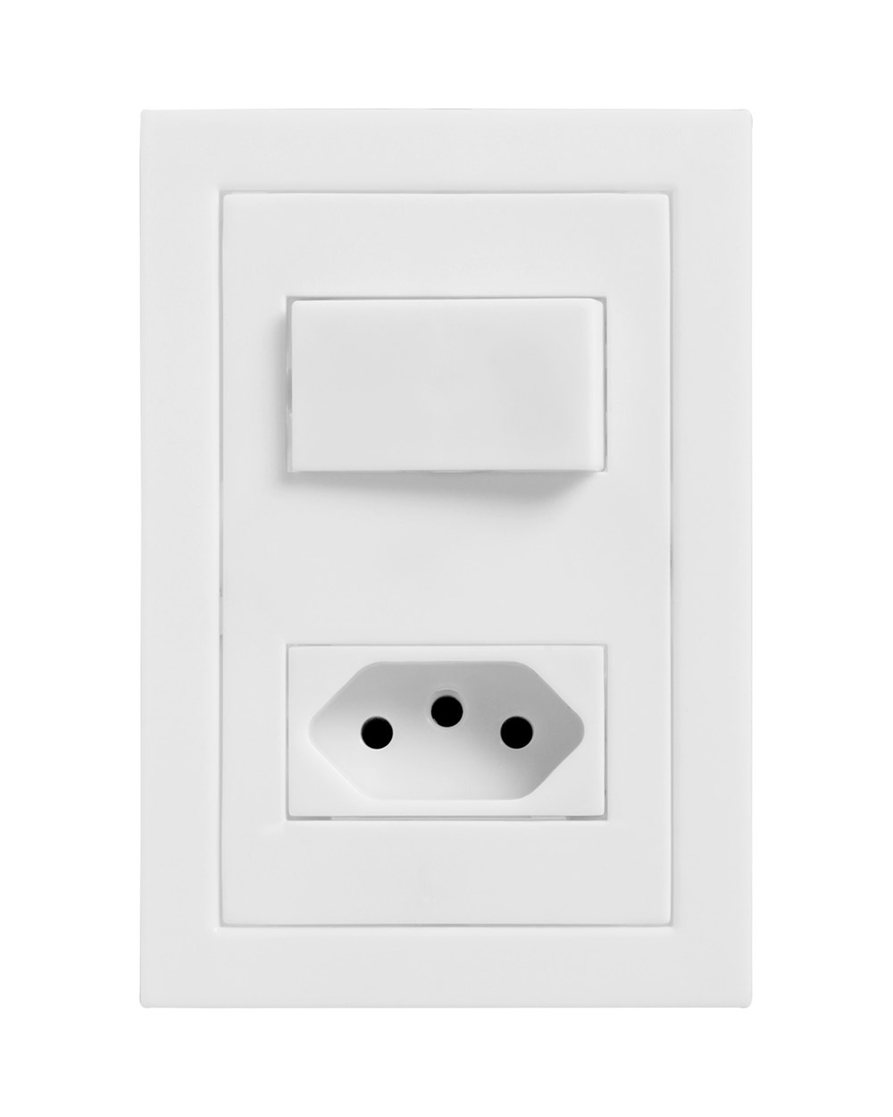 INTERRUPTOR DE EMBUTIR 1 TECLA SIMPLES + TOMADA COM PLACA 10A BRANCO - DICOMPEL