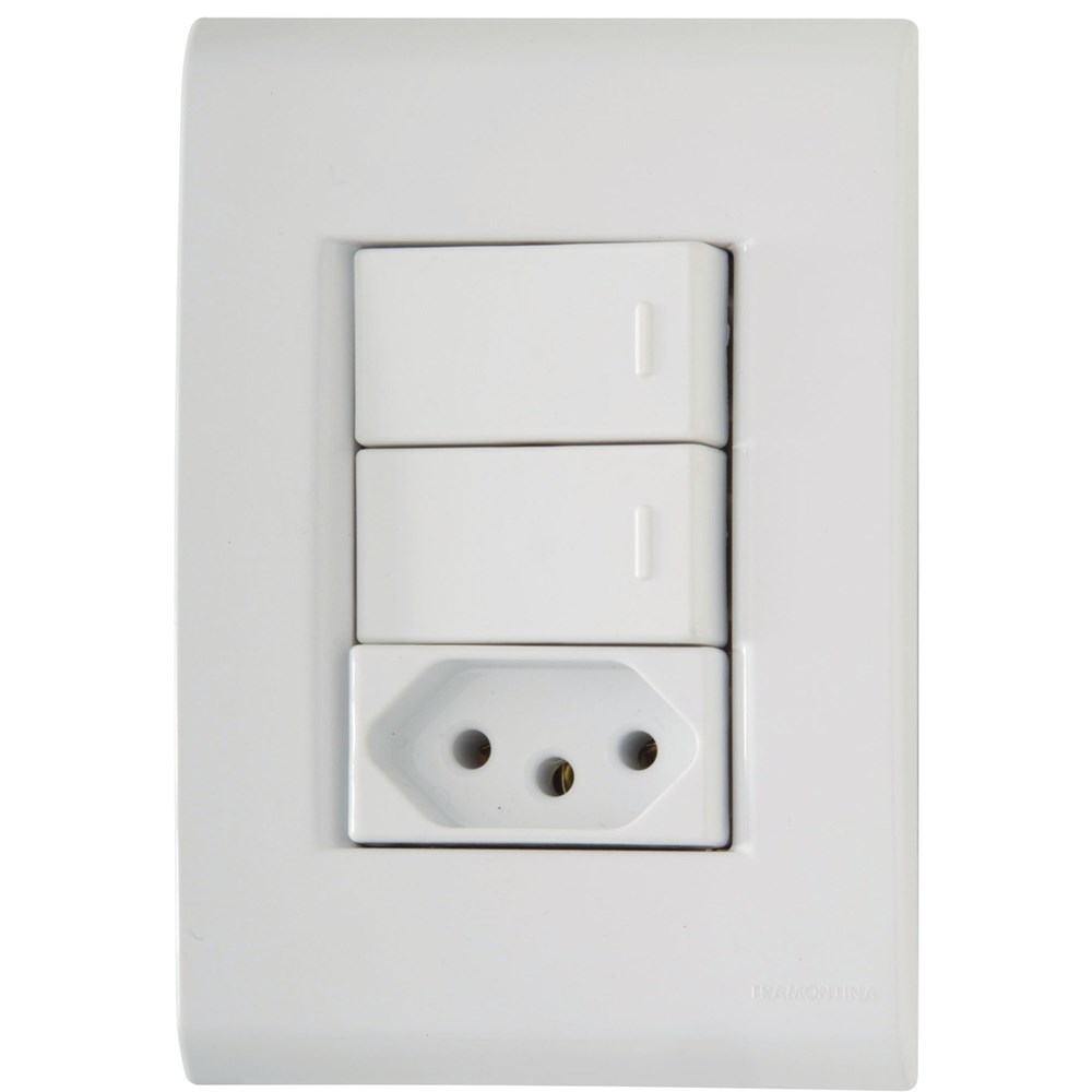 INTERRUPTOR DE EMBUTIR 2 TECLA + TOMADA COM PLACA 20A LIZ BRANCO - TRAMONTINA