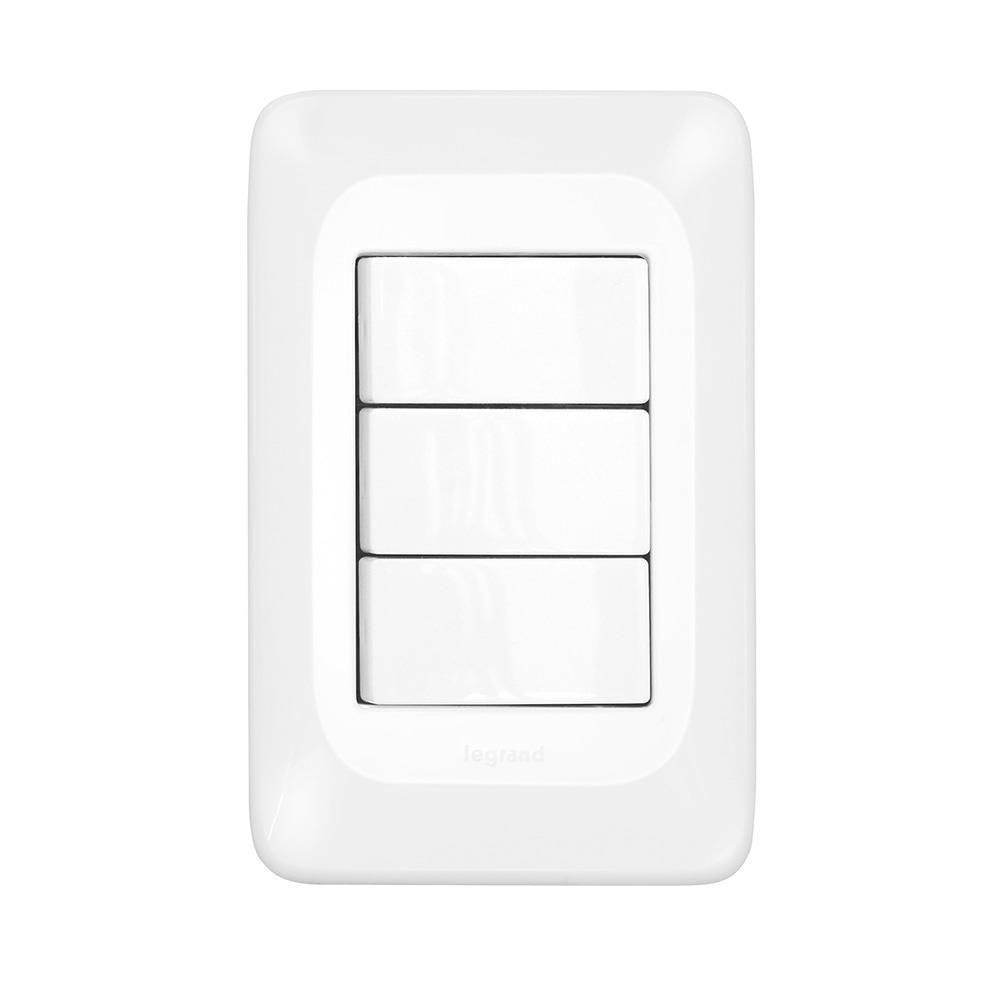 INTERRUPTOR DE EMBUTIR 3 TECLA COM PLACA SIMPLES 10A PIAL POP BRANCO - PIAL