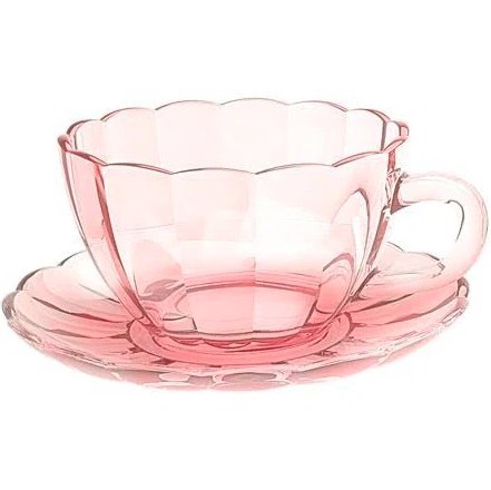 JOGO XICARA CAFE C/PIRES VIDRO PEACH 90ML ROSA 6PCS - HAUSKRAFT