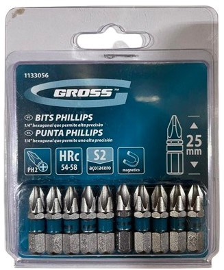 KIT ACESSORIOS PONTA PHILLIPS PH2 ACO RAPIDO 25MM BITS 10PCS- GROSS