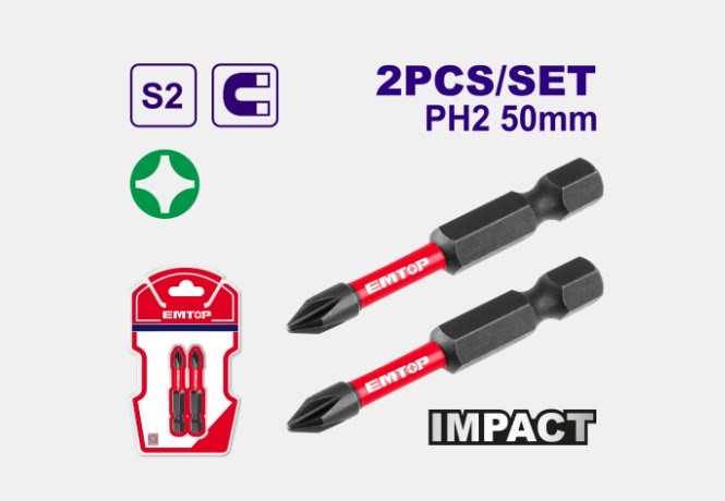 KIT ACESSORIOS PONTA PHILLIPS PH2 ACO RAPIDO BITS 02PCS 50MM - EMTOP