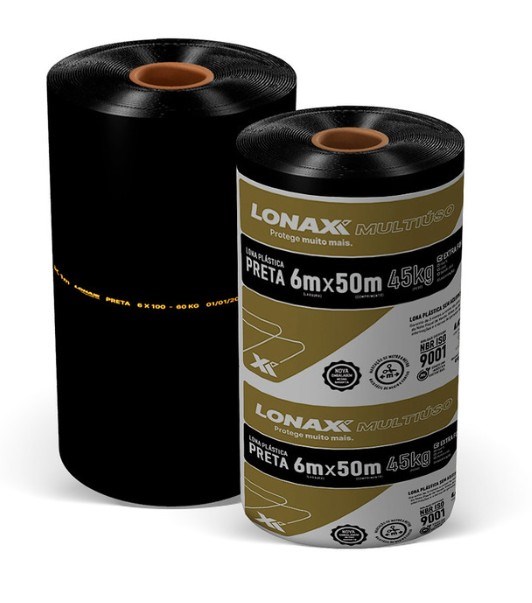 LONA PLASTICA PRETA 6 X 50 45KG - LONAX