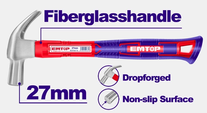 MARTELO UNHA 27MM C/CABO FIBRA - EMTOP