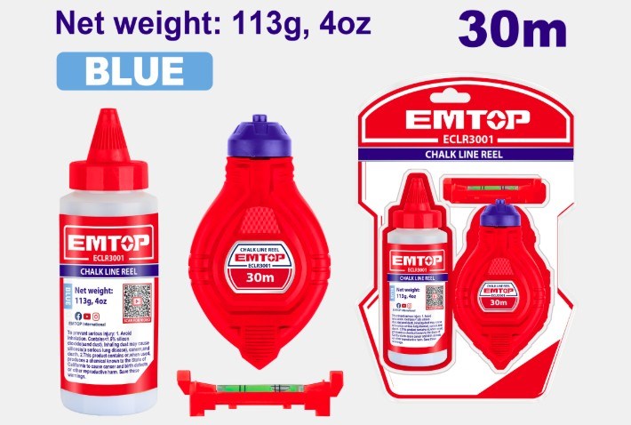 NIVEL DE GIZ 30MT AZUL C/REFIL - EMTOP
