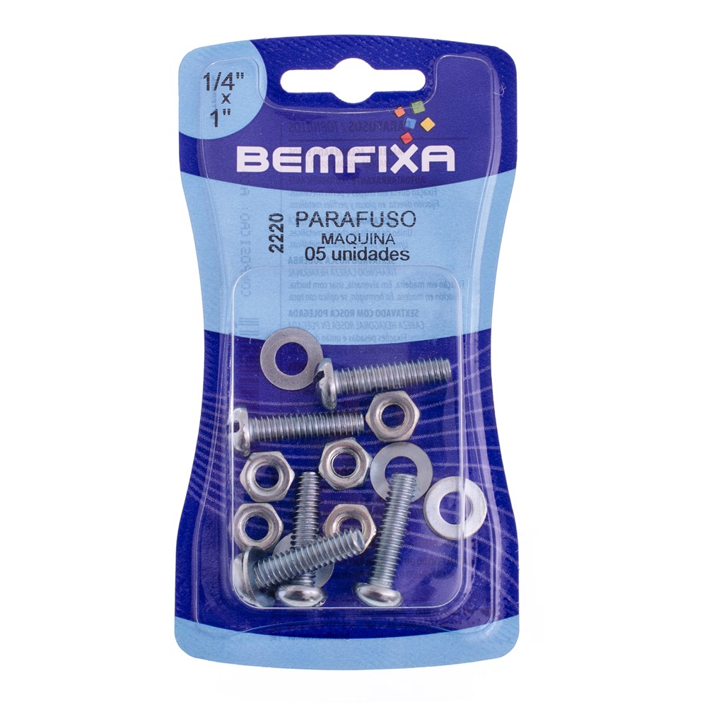 PARAFUSO FENDA P/MAQUINA C/PORCA/ARRUELA 1/4X1 C/5PCS - BEMFIXA