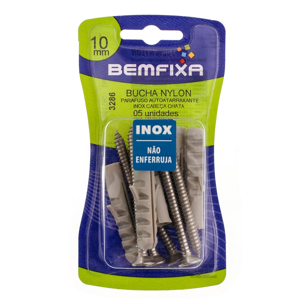 PARAFUSO INOX FENDA CABECA CHATA 6.3X70 C/BUCHA N 10 05PCS - BEMFIXA