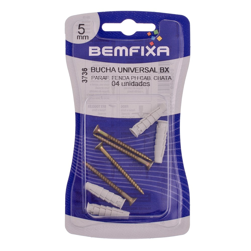 PARAFUSO P/MADEIRA PHILIPS CABECA CHATA C/BUCHA UNIVERSAL N 5 4PCS - BEMFIXA