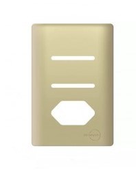 PLACA 4X2 P/ 2 INTERRUPTOR + 1 TOMADA C/SUPORTE HORIZONTAL CHAMPANHE - DICOMPEL