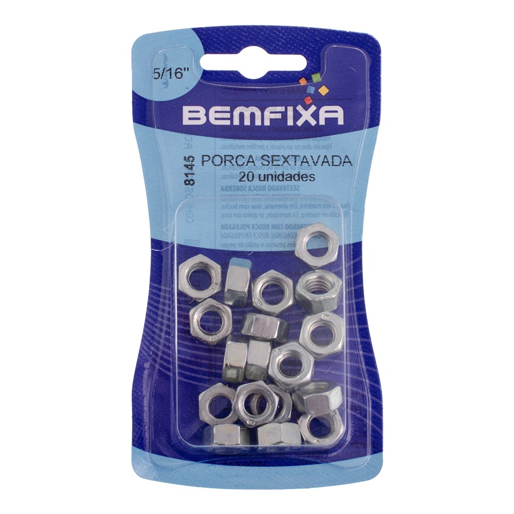 PORCA SEXTAVADA ZINCADO 5/16 C/20PCS - BEMFIXA