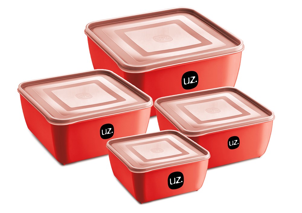 POTE PLASTICO (KIT) QUADRADO MULTIUSO PREMIUM VERMELHO 4PCS - UZ. UTILIDADES