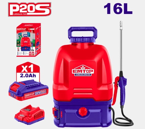PULVERIZADOR COSTAL A BATERIA 16L C/BATERIA BIVOLT - EMTOP