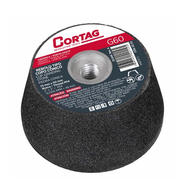 REBOLO CONICO 75X50MM GR 60 M14 P/ESMERIL - CORTAG