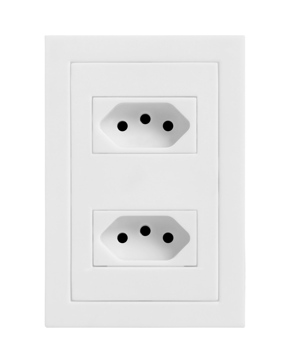 TOMADA DE EMBUTIR COM PLACA DUPLA 2P+T 10A BRANCA - EKRON