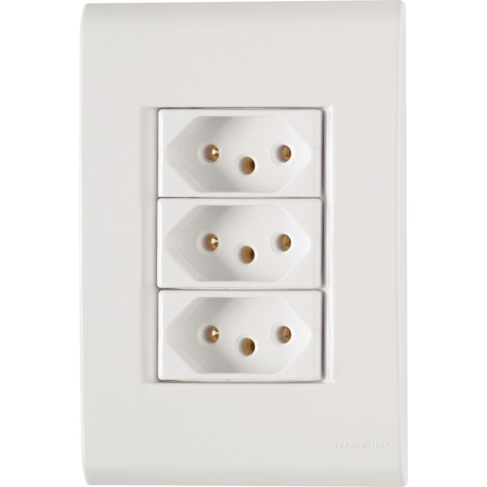 TOMADA DE EMBUTIR COM PLACA TRIPLA 2P+T 20A LIZ BRANCA - TRAMONTINA