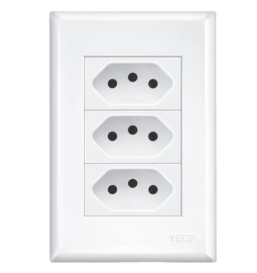 TOMADA DE EMBUTIR C/PLACA TRIPLA 2P+T 10A 250V EVIDENCE BRANCA - FAME